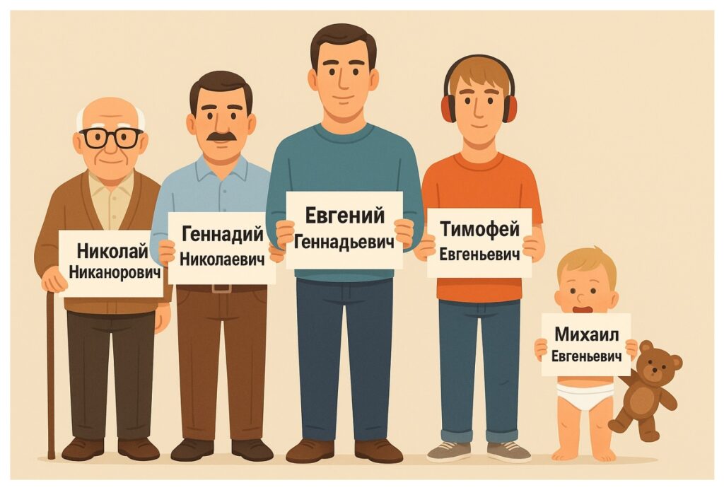 Практически в каждом документе, который был выдан в странах бывшего СССР, наряду с именем и фамилией, присутствует такой элемент как отчество.